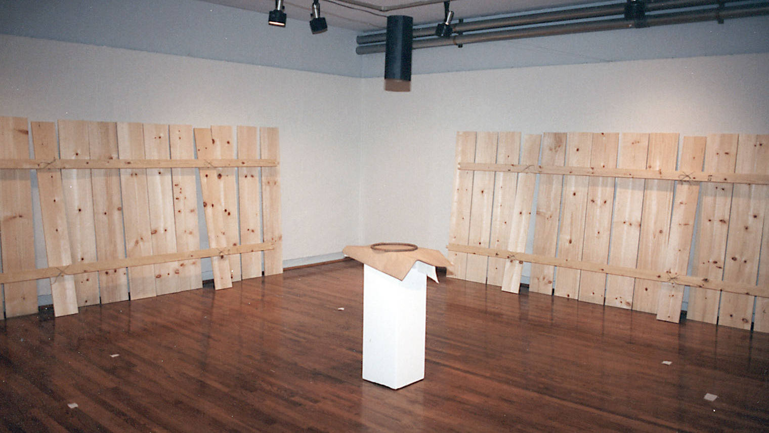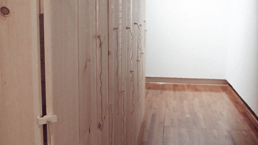 This was my graduation show for a masters degree at San Jose State University. It was an installation taking up the entire space with enough room to walk around the outside. It was held up only by strings connected to a central metal loop.